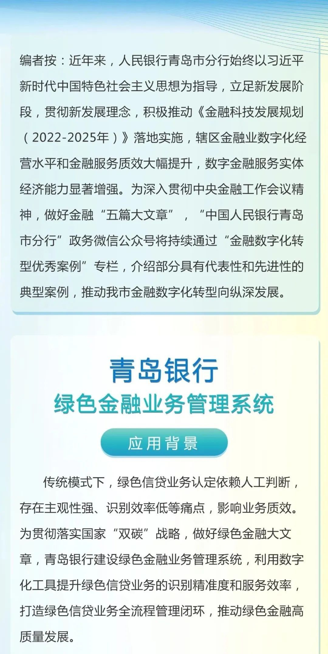 金融數字化轉型優(yōu)秀案例|青島銀行綠色金融業(yè)務管理系統(tǒng)