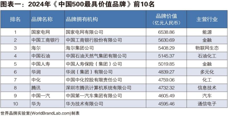 世界品牌實(shí)驗(yàn)室發(fā)布2024年中國(guó)500最具價(jià)值品牌,國(guó)家電網(wǎng)、中國(guó)工商銀行和海爾名列三甲,108個(gè)中國(guó)品牌的價(jià)值超過(guò)1000億。